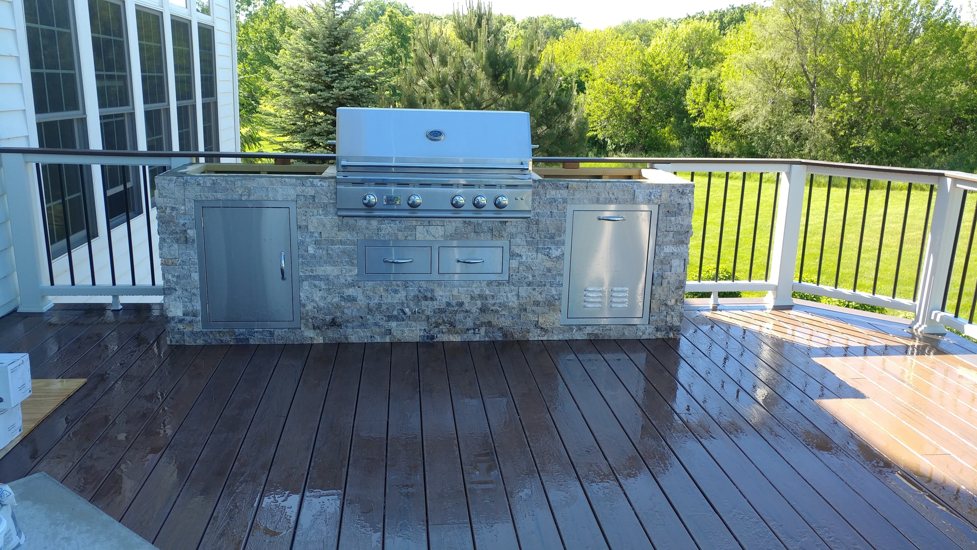 We can design and install tile on outdoor spaces such as patios, decks, and pool surrounds.